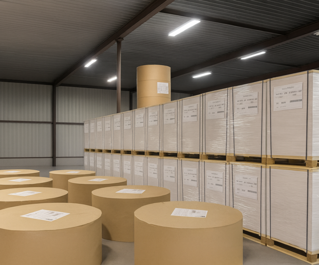 Strategically positioned near Antwerp port with over 5,000 sqm of warehouse storage facilities, we serve European destinations on short notice. Our specialized paper processing equipment handles everything from 40gsm fine papers to 600gsm cardboard converting, with flexible capacity ensuring urgent paper orders receive immediate attention.
